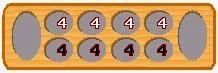 The game is played on a board, which consists of two rows, each one with four holes called "pots". In the original board, the store is in front of each player's row.