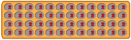 The game board consists of four rows each of 12 holes with two counters per hole.