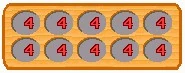 Next round: each player fills his holes with four stones from his winnings. Any hole with less than the full amount is closed down with sand and considered as non-existent, but can be re-opened in a later round.