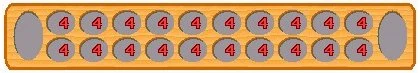 The Dabuda board has two rows, each one with 10 holes ("bodo").