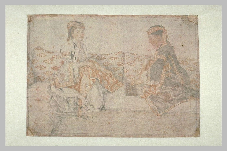 Zwei fränkische oder griechische Damen, die auf einem Divan sitzen und Mancala spielen, ca. 1740, Louvre, Paris