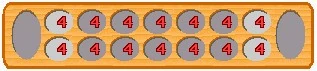 If the last seed falls into a non-empty hole (any number but three), its contents are picked up and distributed in another lap.