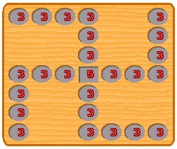 Initially each pit contains three stones, except the Buddha Field which has five stones.