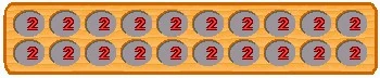 The board has 2 x 10 = 20 holes. Initially each hole contains two stones.