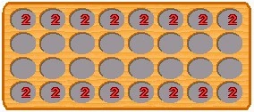 At the start the holes in the outer rows contain two seeds, whereas the inner holes are empty. Each player also has 16 seeds in reserve.