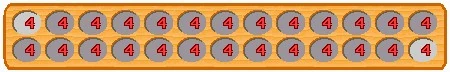At the beginning every hole contains four stones.
