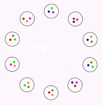 At the start each bowl contains three stones distributed at random, but each of them must be in another color.